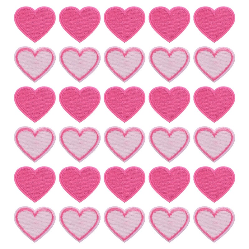 - Shape: heart; colour: rose pink; material: fabric; total size: 4 cm x 3.5 cm/1.57 inches x 1.37 inches (L x W); in the packaging of: 30 x small heart iron-on patches;