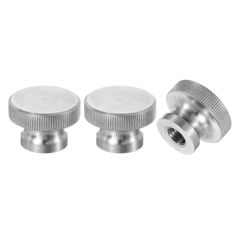 QUARKZMAN Knurled Thumb Nuts, 3 Pieces M8 x D24 mm x H16 mm Stainless Steel Round Buttons Fasteners Blind Hole Hand Screw Nut Silver for 3D Printer Parts, Machine Tools