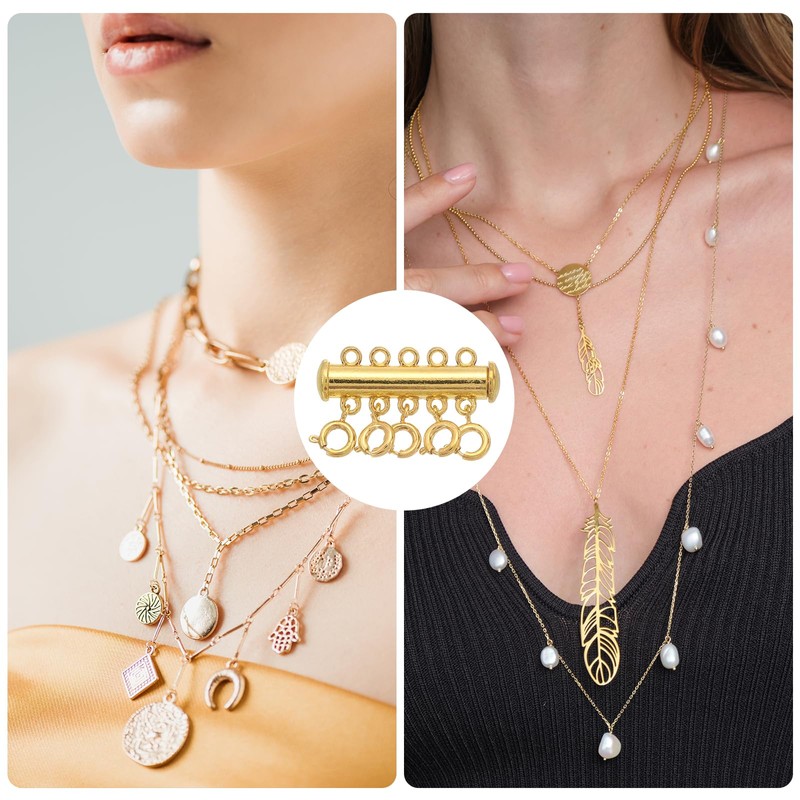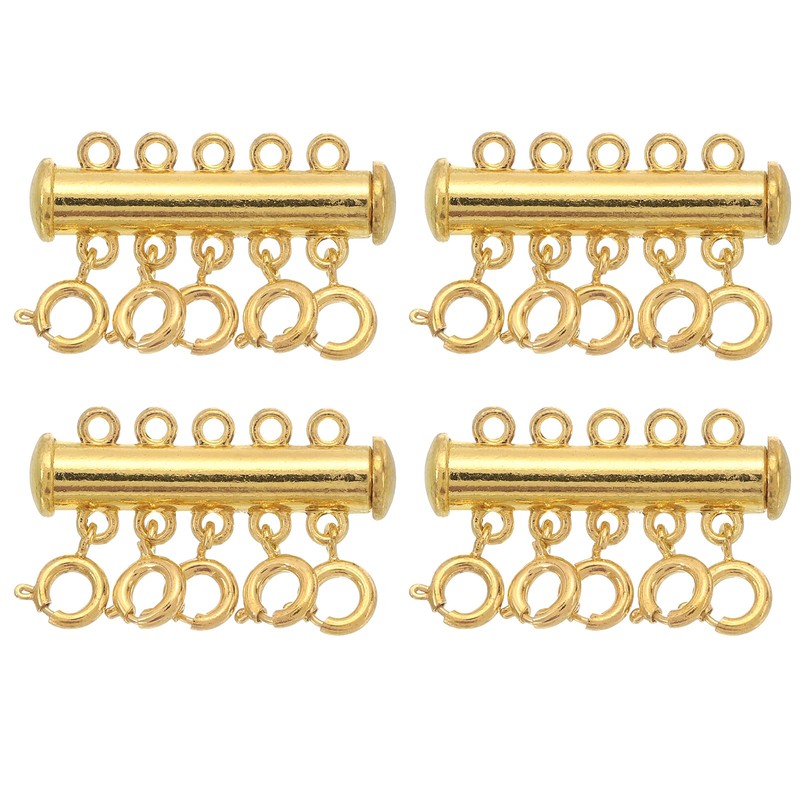 QUARKZMAN Layering Chain Clasp Chain Connector 4 Pieces 5 Strands Sliding Magnetic Clasp for Layer Chain Making, Gold