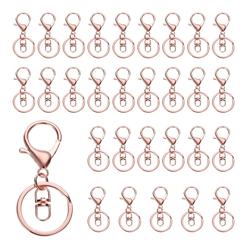 QUARKZMAN Lobster Claw Carabiner Keyring, Pack of 30 Lobster Claw Carabiner Hooks with Rotating Release Clip and Flat Key Ring for DIY Craft Keyring, Rose Gold