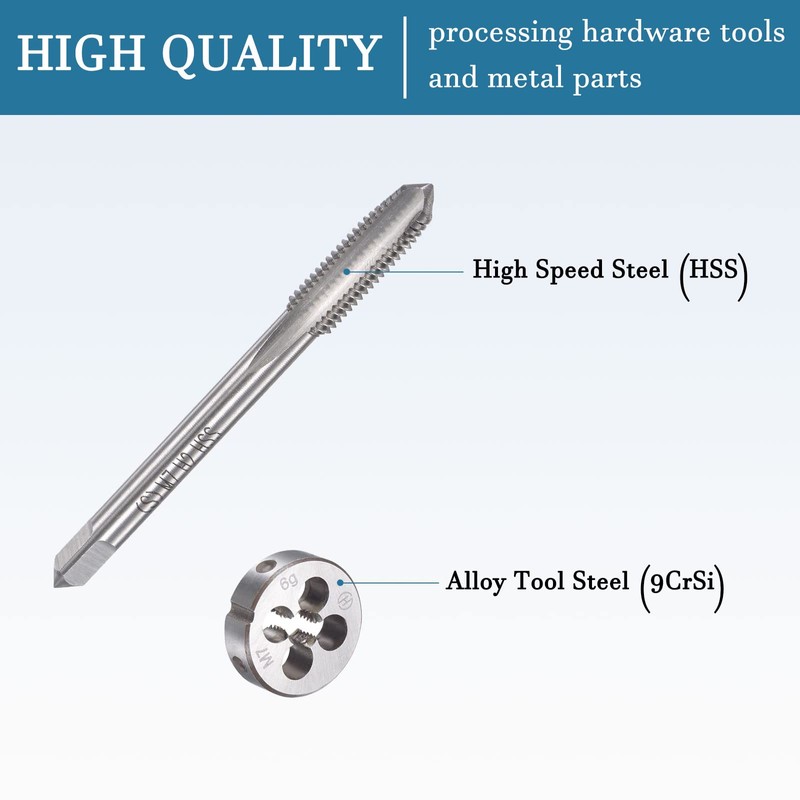 - ! Features - M7 x 1 mm metric tap and round die set, 3 flutes high-speed steel.