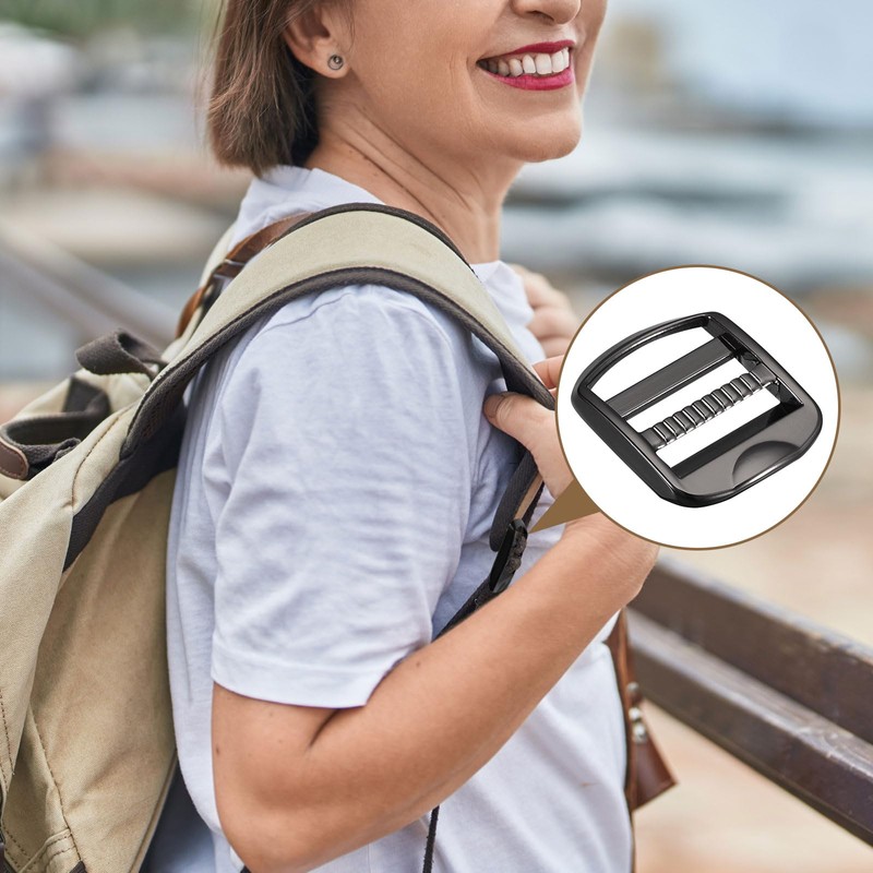 • Application The adjustable metal buckle can be used on numerous backpacks of men and women to adjust straps or shoulder straps. Such as webbing, fastening straps, bags, camping suitcases, backpacks, sports equipment, etc.
