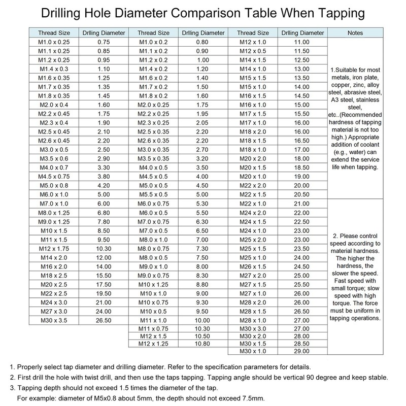 - TIPS Machine taps are used with tapping machines, drills, automatic or milling machines. Drill the holes with a twist drill first and then use the tap. The thread cutting angle should be 90 degrees vertical and stable. Not recommended for manual and electric drill threads.