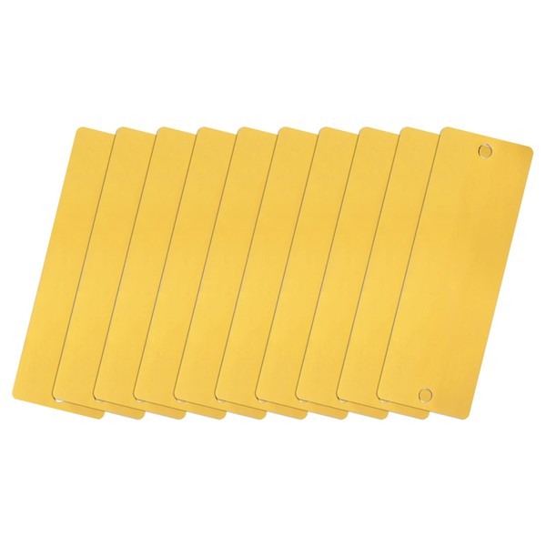 QUARKZMAN Pack of 10 45 x 15 x 0.3 mm Aluminium Blank Labels Rectangle Engraving Blanks Card with 2 Holes for Machines Name Plate DIY Label Pendant (Gold Tone)