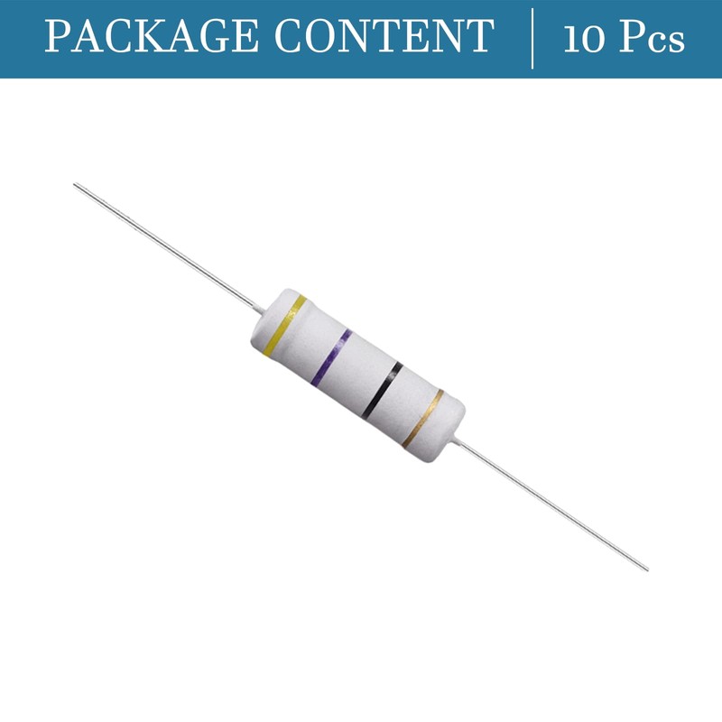 QUARKZMAN Pack of 10 47 Ohm 5 Watt Metal Oxide Film Resistor 5% Tolerance Resistance Cable for DIY Electronics Projects [Four Bands Standard UVP Colour Code]
