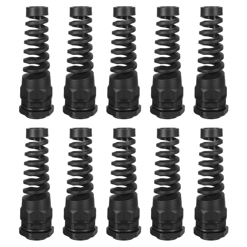 QUARKZMAN Pack of 10 Waterproof Cable Glands, M20 Nylon Coil Spring Strain Relief Cable Joint with Seal for 10-13 mm Wire Thread Cable Attachment and Devices, Black