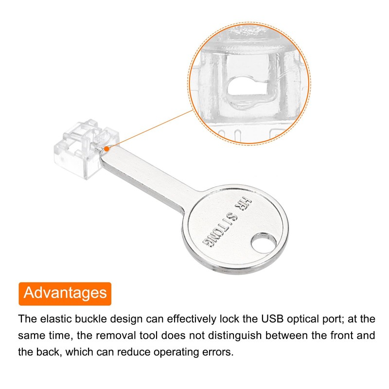 • The RJ45 port blocker can be used in various devices and places and is suitable for optical fiber switches, routers, industrial computers, computers and other devices with RJ45 optical ports. The product is a blocking cap with special insertion key made of PC material, which can protect open network ports and prevent users from connecting cables, devices or foreign objects without permission.