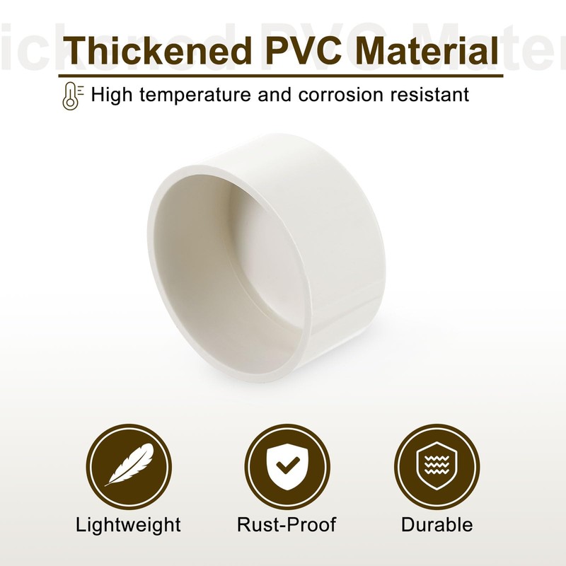 • Sturdy Material The pipe end cap fitting is made of PVC material with a thickened pipe wall, which is durable, corrosion resistant and not easy to break and deform.