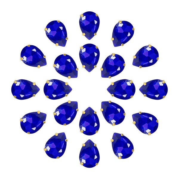 QUARKZMAN Pack of 20 Teardrop Shape Sew-On Rhinestones - 18 x 13 mm Flat Back Glass Drops Crystal Rhinestone Gold Prong Setting for Craft Jewellery (Sapphire Blue)