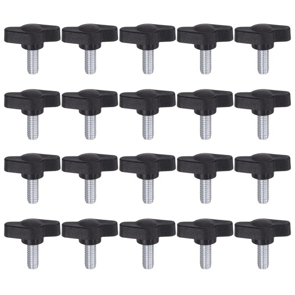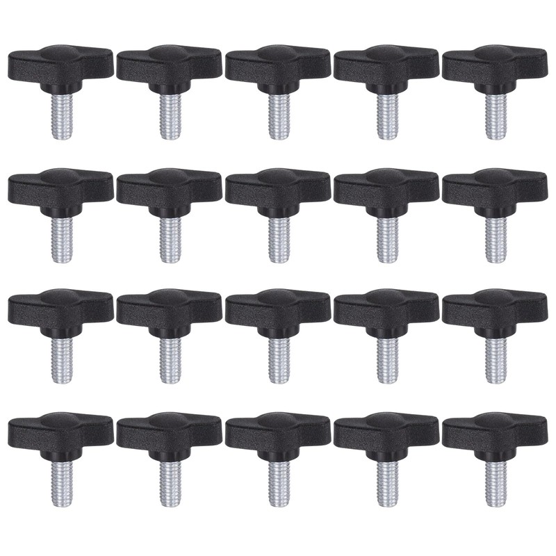 QUARKZMAN Pack of 20 Thumb Screws with T Wing Knobs, M6 x 14 mm, Plastic T-Head Threaded Bolts, Clamping Screw, Wing Screw, Grab Handles, 27 mm Clamping Button, Thumb Screws for Machine, Black