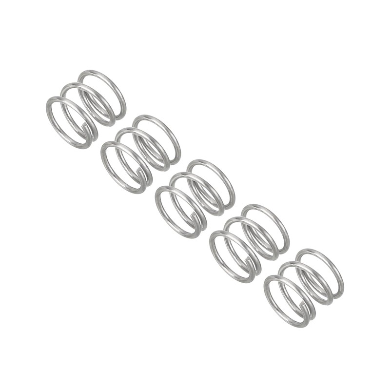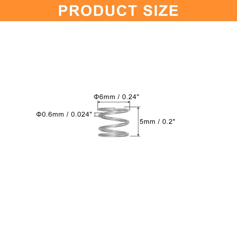 - [Parameters] - Color: Silver; Wire Diameter: 0.6mm/0.024"; Outer Diameter: 6mm/0.24"; Free Length: 5mm/0.2"; Package Content: Pack of 5 Compression Spiral