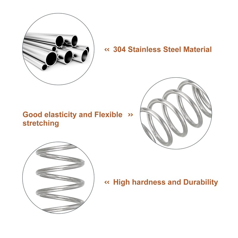 - [Material] - Made of 304 stainless steel, the compression spiral has good corrosion resistance, oxidation resistance and high temperature resistance, which ensures long-term use without being easily damaged.