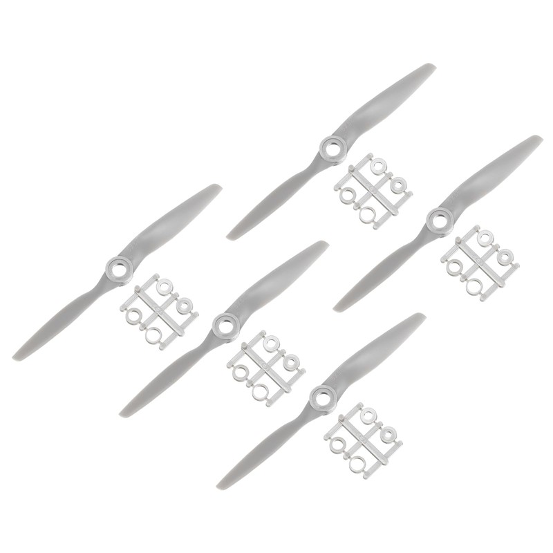 Package includes: 5 x fixed wing aircraft propellers, 5 x washers.