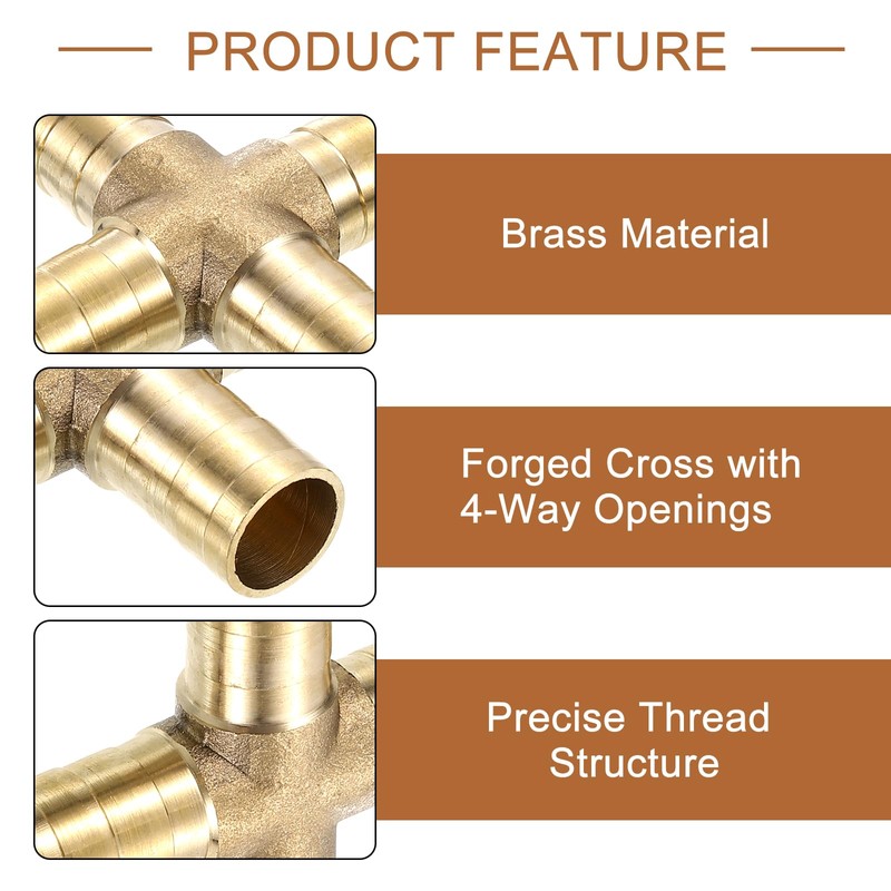 - [MATERIAL]: Our cross connector is made of brass material, which has strong wear resistance, fine workmanship, beautiful appearance, corrosion resistance, heat resistance, low temperature strength and good mechanical properties, strong and durable. You can use our brass connector for a long time