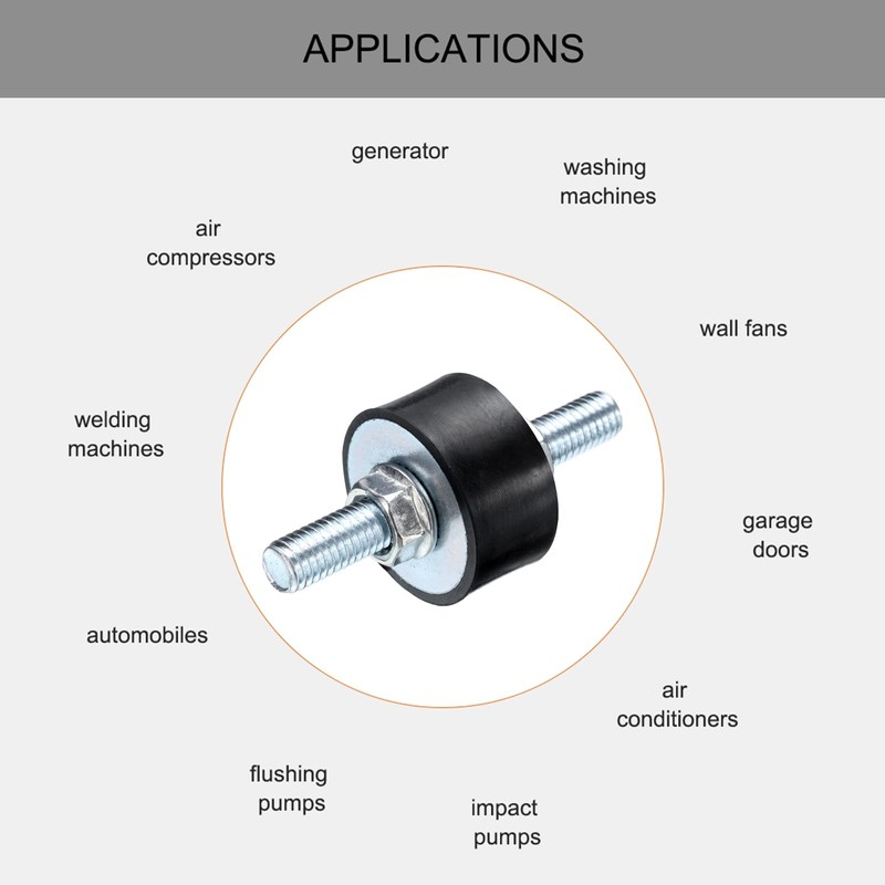 - Noise Reduction These rubber buffer mounts effectively control vibration, shock and noise, and are good for use in welding machines and other equipment. They provide cushioning and noise reduction, protect the normal operation of machines and create a quieter environment.