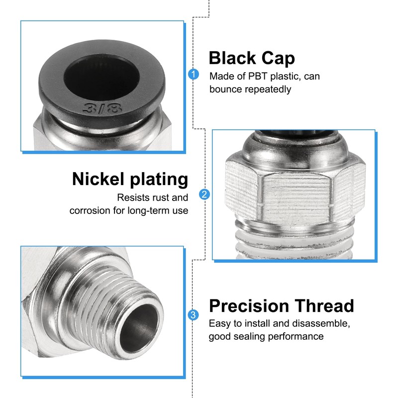 • Material – Unser Luftschlauch-Anschlusssatz besteht aus PBT-Kunststoff und Kupfer, ist leicht, die vernickelte Oberfläche kann Rost und Korrosion verhindern und die verschleißfeste und hitzebeständige Leistung ist für Hochdruck- und Hochtemperaturanwendungen geeignet.