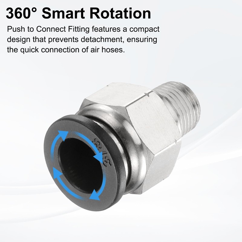• Hinweis: Für den Anschluss ist kein Werkzeug erforderlich. Schieben Sie den Schlauch einfach in die pneumatische Armatur, um eine sichere Verbindung herzustellen. Luftarmaturen müssen bei einem Enddruck von 1,6 MPa und Temperaturen von -40 °C bis +60 °C betrieben werden.