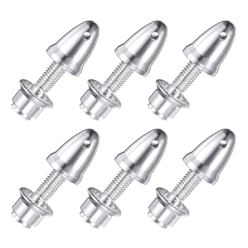 The RC aircraft propeller adapter, size: 3 mm (bore) x 6 mm (output shaft); colour: silver; material: aluminium; in package: pack of 6 RC plane spinners.