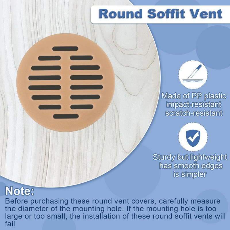 [Hinweis] Vor dem Kauf dieser runden Lüftungsabdeckungen messen Sie sorgfältig den Durchmesser des Montagelochs. Wenn das Montageloch zu groß oder zu klein ist, wird die Installation dieser runden Soffit-Lüftungen fehlschlagen
