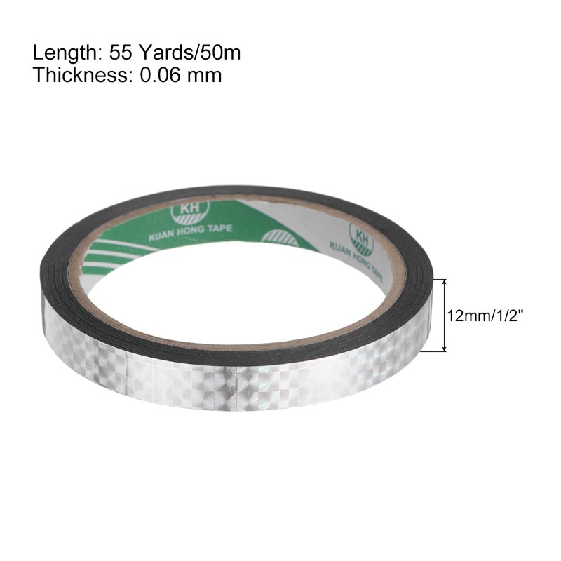 - Total length per roll: 55 yards/50 m; Tape width: 1/2 inch/5 mm; 0.06 millimeter; Colour: silver; Material: metalized polyester and aluminium foil; in the packaging: 1 piece x silver metalized tape.