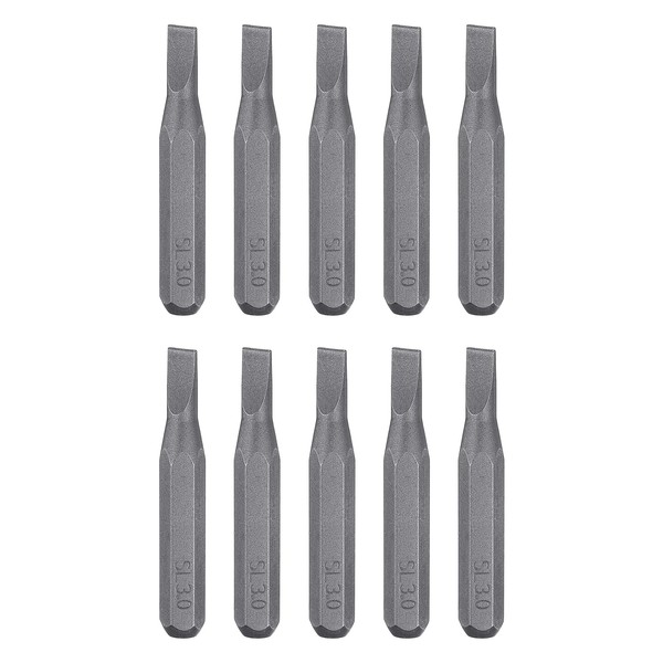 - Size - SL3.0; total length: 28 mm/1.1 inches; shank: 4 mm/5/32 inch hex shank; flat slotted head drill specially designed for effortless screwing of screws into wood, metal and other materials. Can tighten screws precisely without damaging screws and screwdriver bits