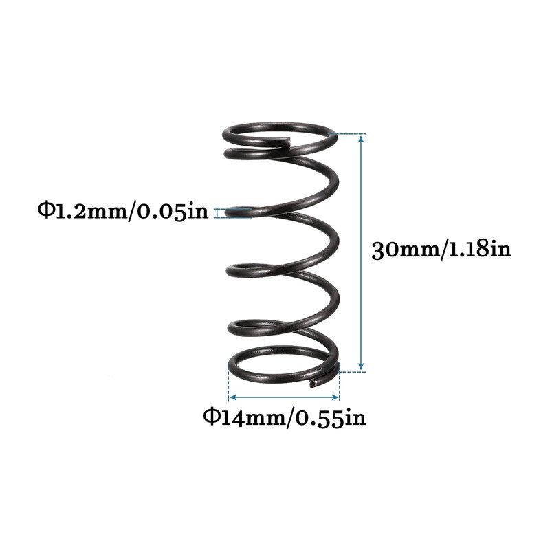 QUARKZMAN Small Compression Spring x 10 Pieces Spring Steel Tension Spring for Household Applications, [Black, 1.2 mm Wire Diameter, 14 mm Outer Diameter, 30 mm Free Length]