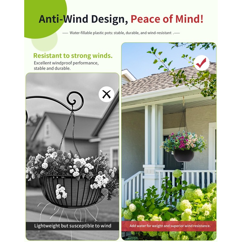 - [Hassle-Free Setup, Lasting Beauty]: Just a few minutes of DIY, you can complete the stunning sky garden decoration! Unlike real flowers that are pecked by birds or quickly fade, this artificial hanging basket remains vibrant year-round and requires no maintenance