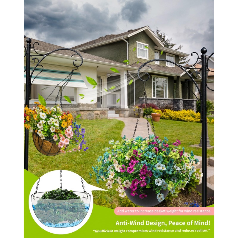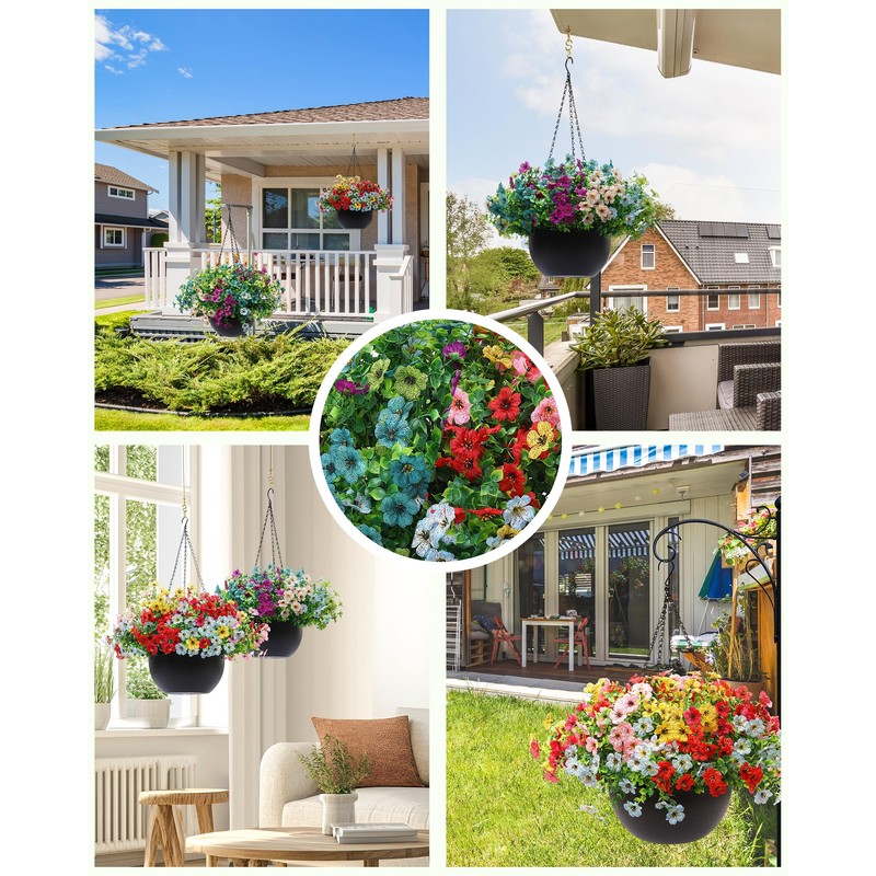 - [Built to Withstand the Elements]: The colors of the fake flowers in the hanging flower basket are crafted to closely mimic those of real flowers. High-quality materials stand the test of the weather. Let you enjoy beauty all year round without fear of fading, rusting or withering