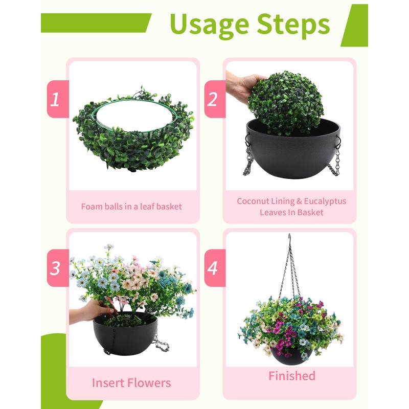 - [Versatile and Home Decor]: From spring-summer decoration to everyday elegance, from indoors to outdoors, these hanging flower baskets are perfect for any occasion. They add charm and brightness to weddings, parties, or cozy family mornings, or give it as a gift to a friend or neighbor