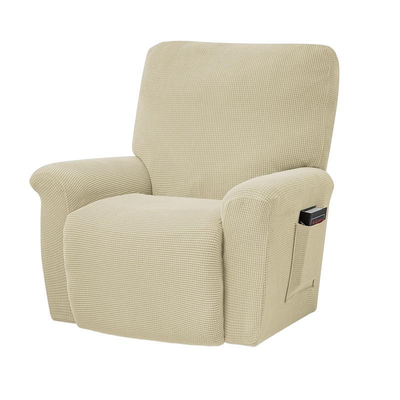 Qubjus Recliner Chair Covers Stretch Sofa Slipcover 4 Pieces Sofa Cover Furniture Protector Soft Classic Elastic Couch Covers with Pocket, Beige