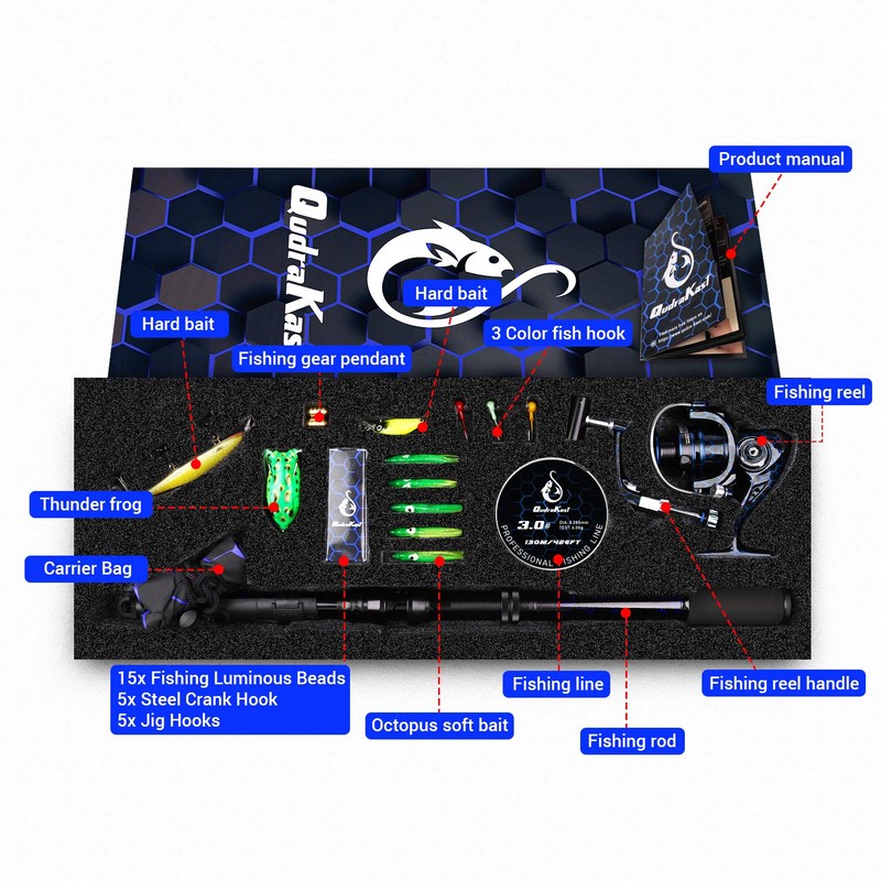 QudraKast Fishing Rod and Reel Combos, Unique Design with X-Warping Painting, Carbon Fiber Telescopic Fishing Rod with Reel Combo Kit with Tackle Box, Best Gift