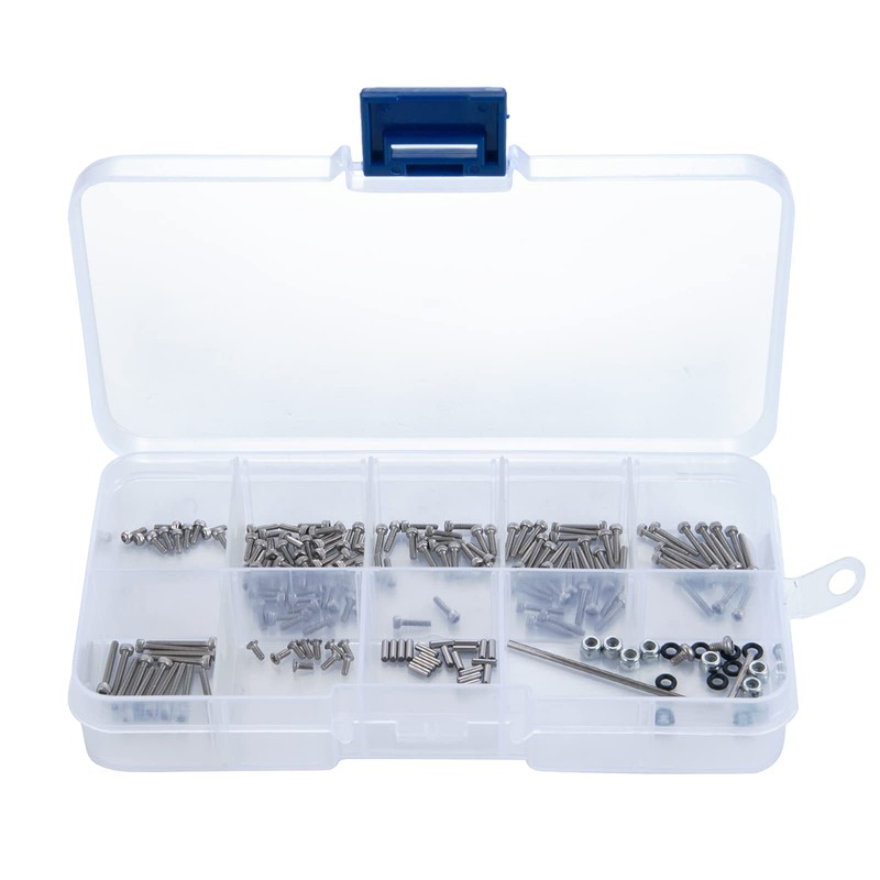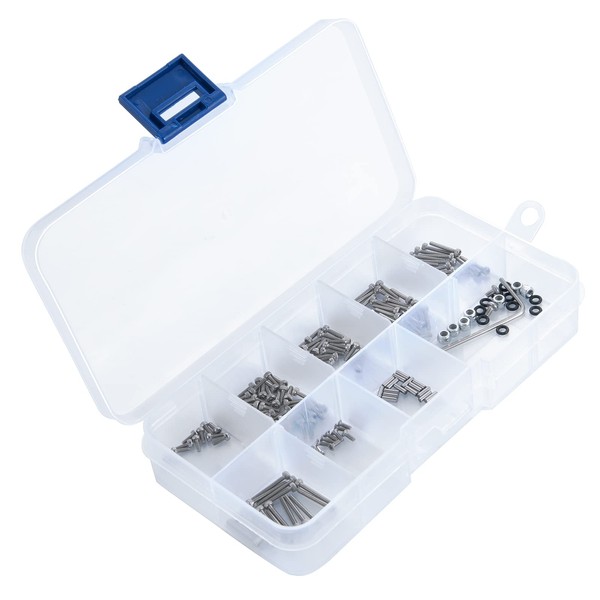 Que-T 186pcs RC Screws Kit M1.4 Metal Screws Pin M2 Nut Box Set for Axial SCX24 90081 AXI00001 C10 AXI00002 1/24 Crawler Car Upgrade Parts