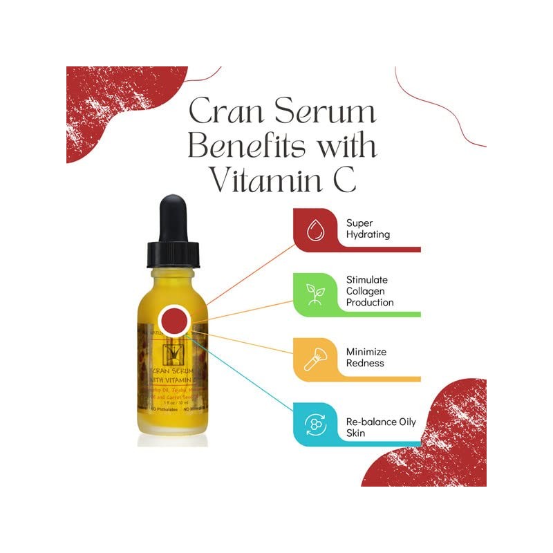 Queen B Cran Serum Firming Toning Natural Face Serum with Vitamin C 1oz