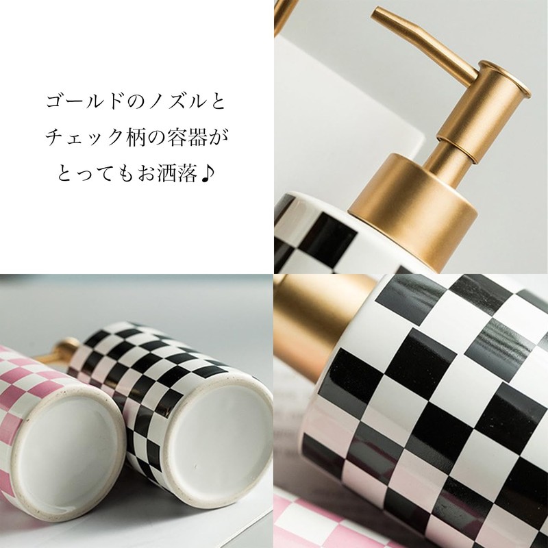 Queen-b Soap Dispenser, Checkered Pattern, Stylish, Cute, Bathroom, Manual, Liquid Bottle, Container, Bathroom, Ceramic Dispenser, Soap, Shampoo, Rinse Refill (Black)