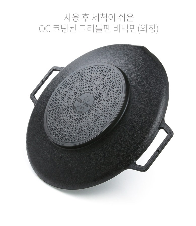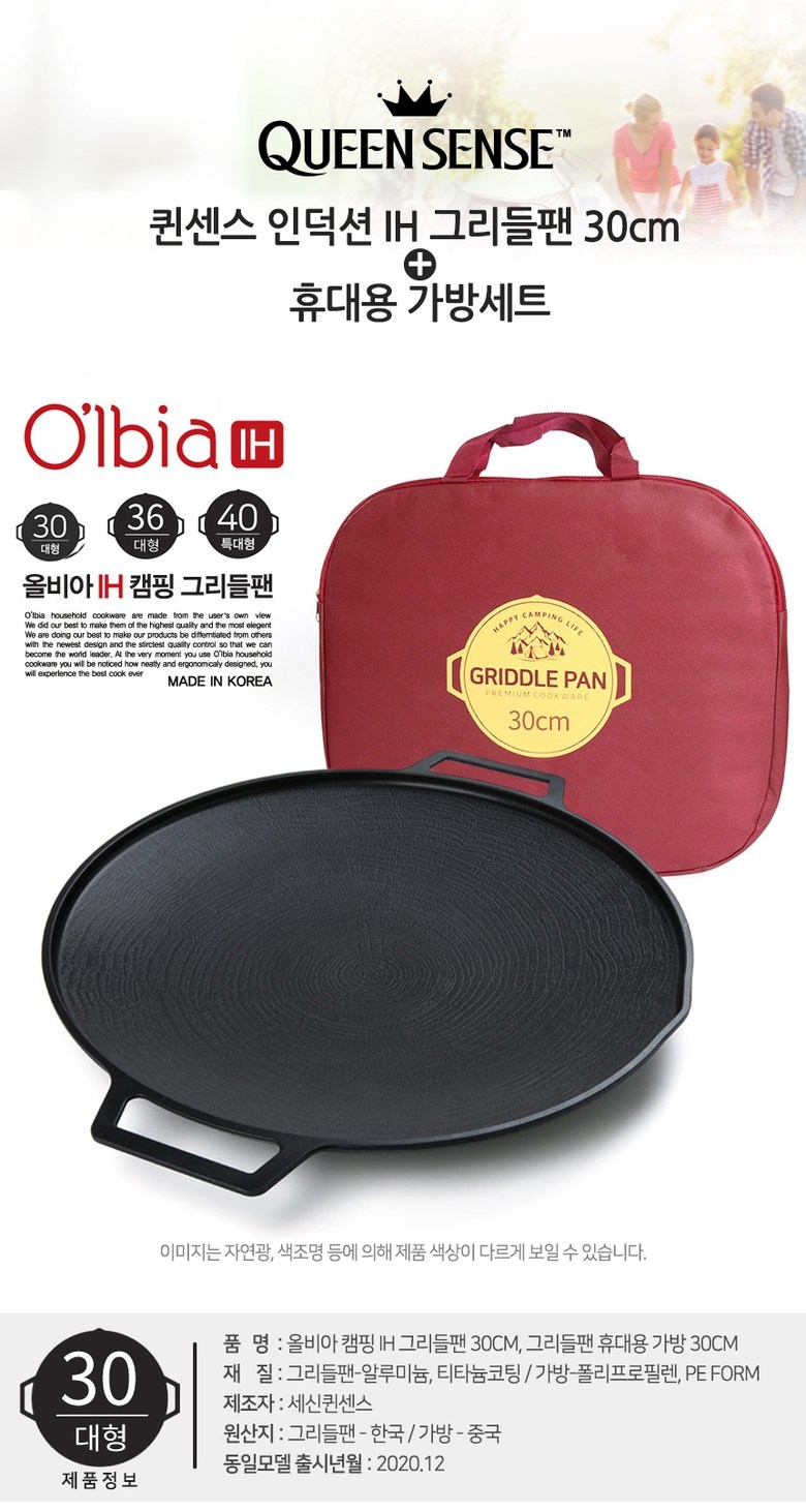 Queen Sense Titanium Coated Induction Camping Griddle Pan + Storage Bag + Handle, Griddle Pan 30cm + Bag + Handle / 퀸센스 티타늄코팅 인덕션 캠핑 그리들팬 +보관가방+손잡이, 그리들팬 30cm + 가방+손잡이
