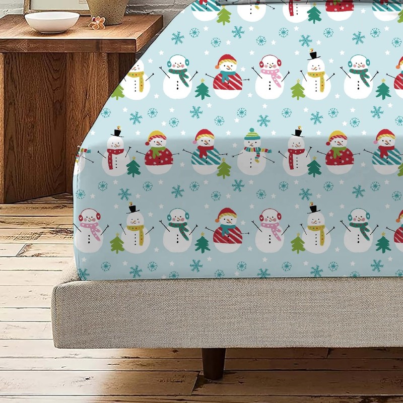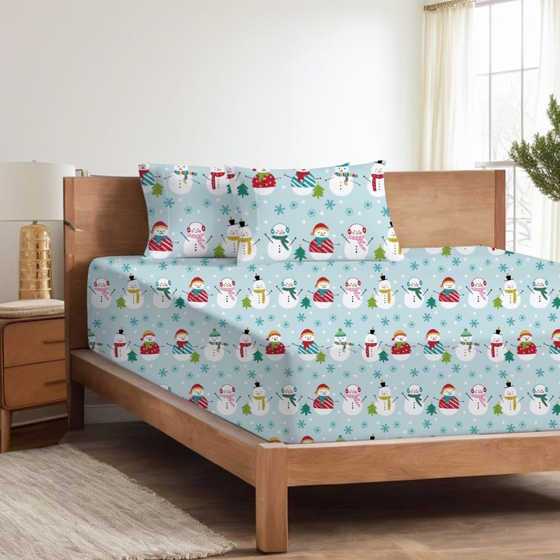 - Starry Snowmen: Get into the festive spirit with our Starry Snowmen microfiber bed sheet set. Featuring cheerful snowmen under a starry night sky, this set brings warmth and holiday cheer to your bedroom, perfect for cozy winter nights.