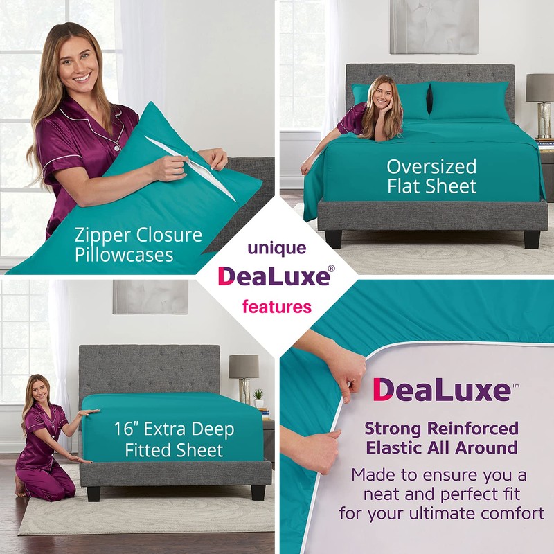 Queen Sheets Set Bed Sheets – Queen Bed Sheets Set Sheets for Queen Size Bed Bedding Sheets & Pillowcases – 16” Deep Pockets Fitted Sheet – Oversize Flat Sheet – 2 Zipper Closure Pillowcases – Teal