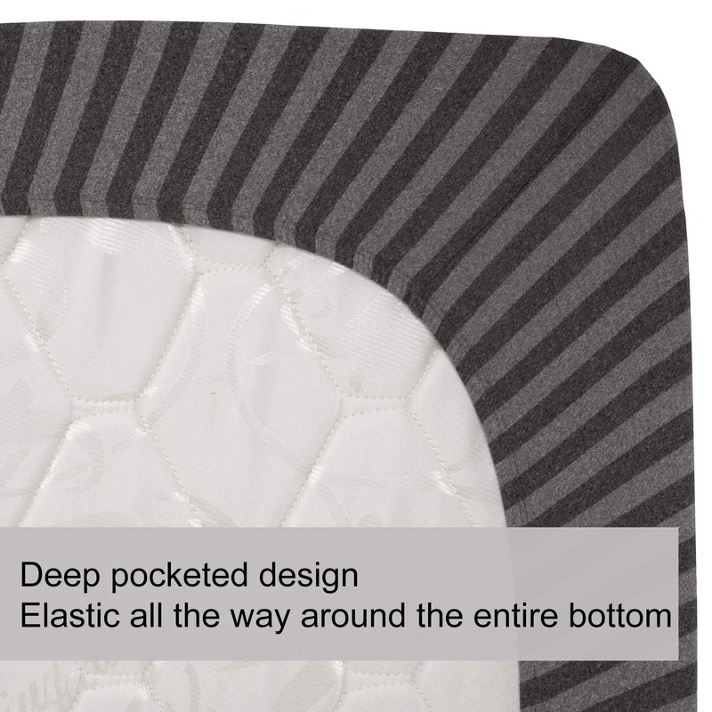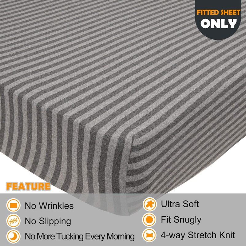 Queen Size Fitted Sheet Only - 4-Way Stretch Jersey Knit, T-Shirt Feeling & Ultra Soft, Wrinkle Free, Non-Slip & Snug Fit for Mattress (Deep: 5"-16") - Gray & Black, Queen