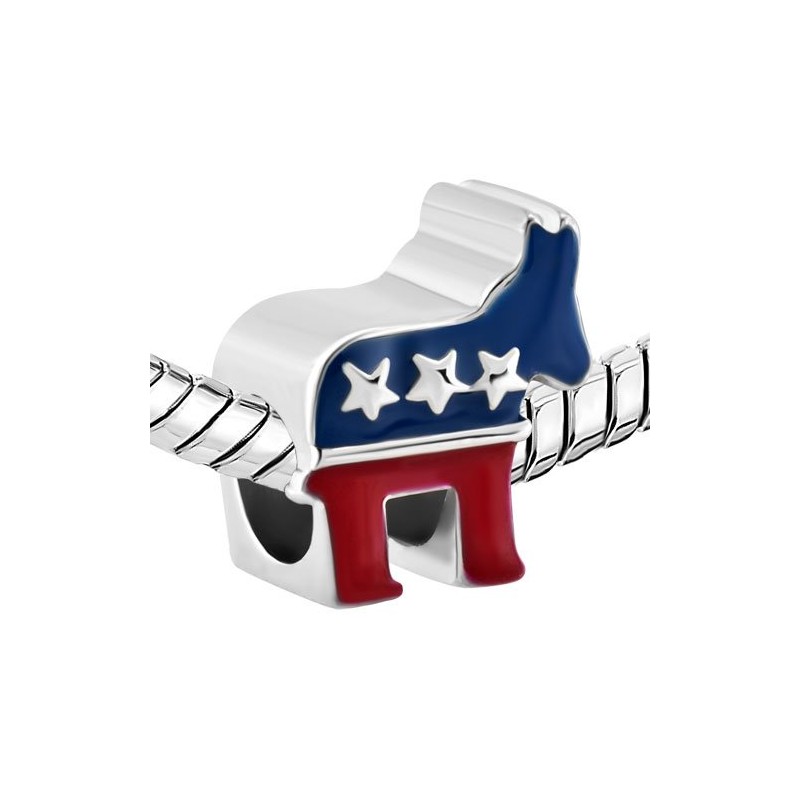 QueenCharms Animal Charm USA Party Smart and Brave Democratic Donkey Bead for Bracelet