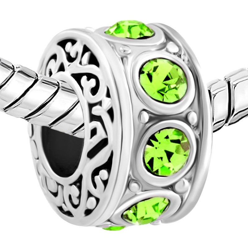 QueenCharms Jan-Dec Simulated Birthstone 12 Colors Spacer Charm Beads Fit European Charm Bracelets (August)