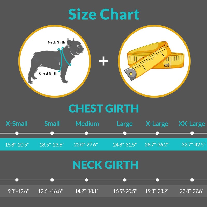 XXL--Back Length:19.3"; Chest Girth: 29.2"-38.6"; Neck Girth: 25.9"-30.7"