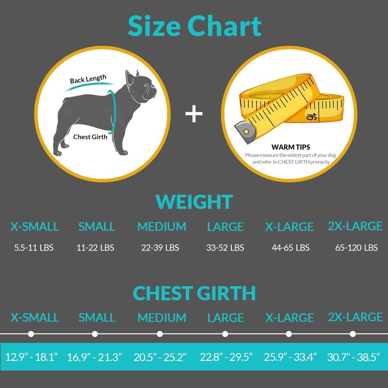 We provide size xs to xxl for small, medium and large dogs including Chihuahua, Poodle, Yorkshire Terrier, Shih Tzu, Maltese, Pomeranian, Dachshund, Miniature Schnauzer, Boston Terrier, French Bulldog, Beagle, Golden Retriever, German Shepherd, Boxer, Rottweiler, Doberman Pinscher, Australian Shepherd, Cocker Spaniel. Please do refer to our size chart.