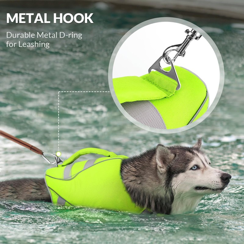 Queenmore Small Dog Life Jacket, Dog Life Vest for Swimming Boating, Puppy Life Jackets for Small Dogs, Ripstop Pet Life Vests with Rescue Handle Leash Hole, Safety Water Floating Vest, Hi-Vis Green