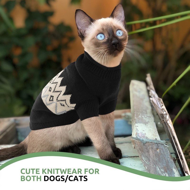 - HIGH ELASTICITY PET KNITWEAR: Though tighter knitted, this pet sweater for dogs and cats is still with high elasticity. There are five sizes available, from XS to XL, fitting most small and medium dog breeds and most cats. High elasticity allows you to help your pet put it on without much effort.