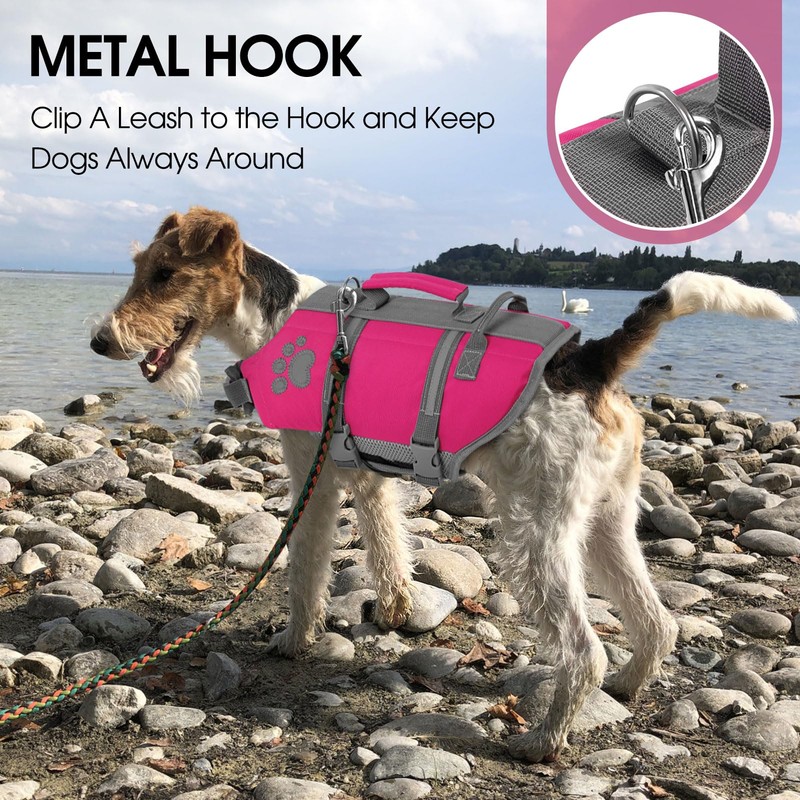 - Best Dog Life Vest for Swimming/ Boating/ Water Sports: The mental leash hook allows dog owners to attach their dog to a boat or dock while they are out on the water. This is especially useful during boating, kayaking, or paddleboarding. The leash hook also gives owners a way to regain control and prevent the dog from swimming too far or control active dogs when walking or hiking by water.