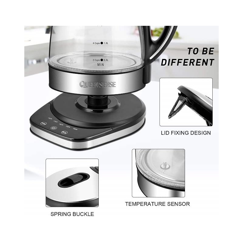 QUEENSENSE 1.7L Blue LED Light Electric Hot Water Glass Kettles