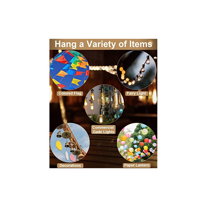 - MULTIPLE USAGE: Our string lights poles can be used not only to hang exterior string lights and holiday streamers, but also to display a variety of decorations, including banners, streamers, lanterns, balloons or garlands, and more. Perfect for creating an instant ambience or feast for your birthday party, family camping trip, wedding.