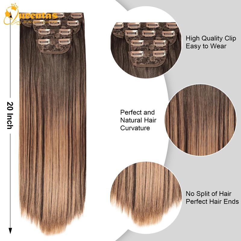 - More Hair ExtensionsQUEENTAS clip-in hair extensions come in 4-piece wigs, 200g of hair with clips: 1 piece 7-inch wide 4 clip wefts, 1 piece 6-inch wide 3 clip wefts, 2 pieces 5-inch wide 2 clip wefts.