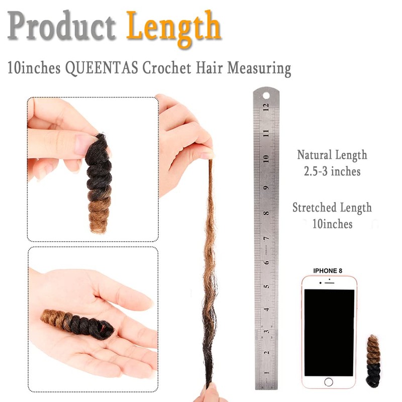 - Type: natural black 10 inch ombre for brown spring twist small toni curl crochet braid hair, super bouncy and realistic.