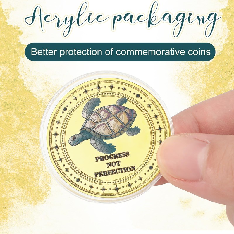 Quelay 3D Turtle Design Affirmation Sobriety Coin Progress Not Perfection Inspirational AA Chip Medallion One Step at a Time Coins Sobriety Gifts for Sober Men Women in Recovery